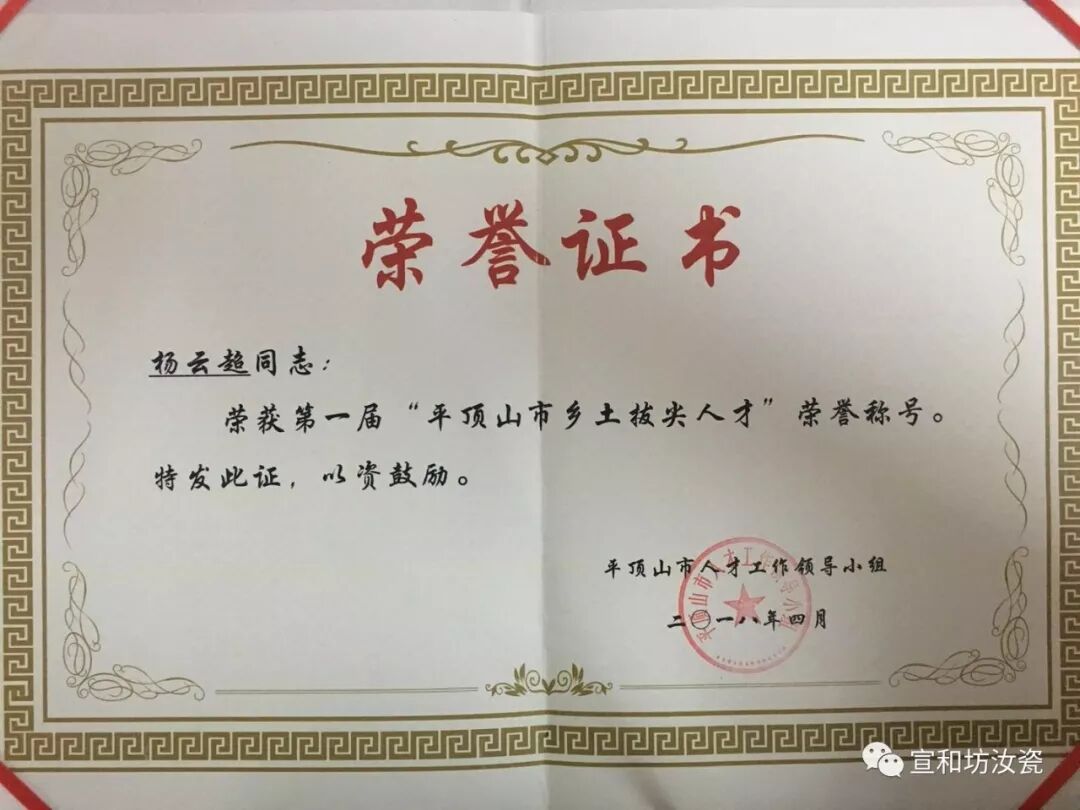 平顶山人才工作领导小组评选杨云超为乡土拔尖人才